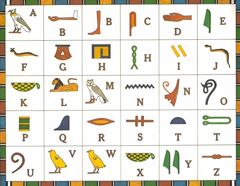 Escribe una palabra en jeroglífico y envíasela a un compañero, a ver si es capaz de traducirla. Aquí tienes el alfabeto jeroglífico para ayudarte.