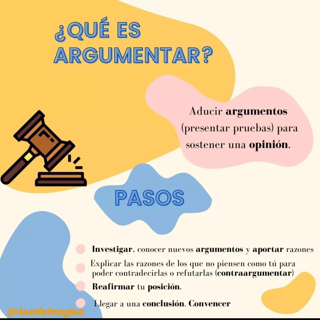 Estas dos palabras son clave en los textos argumentativos. En ellos, el emisor pretende convencer al receptor de sus ideas mediante razonamientos y pruebas. Aunque hay una gran variedad de estructuras posibles, en todo texto argumentativo vas a encontrar dos tres elementos básicos: el tema, la tesis y el cuerpo argumentativo.