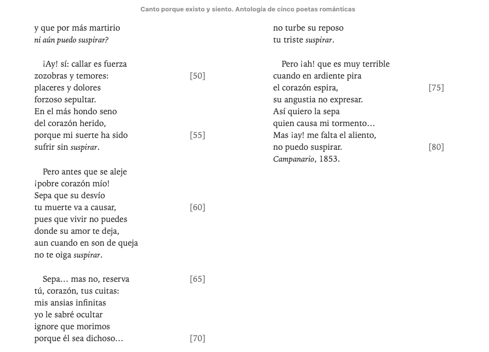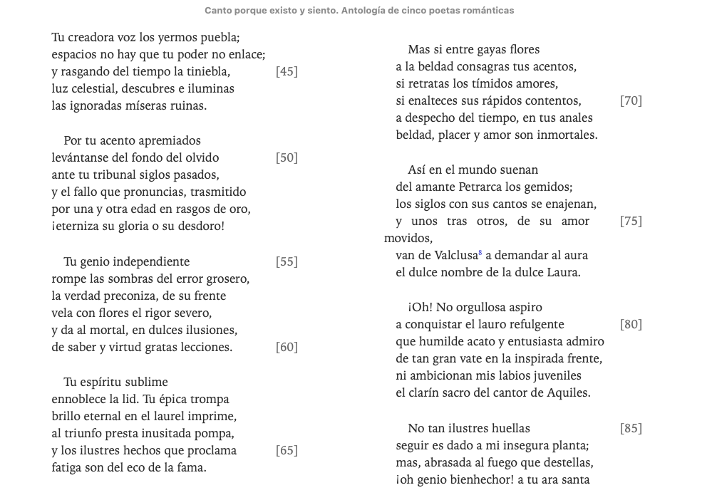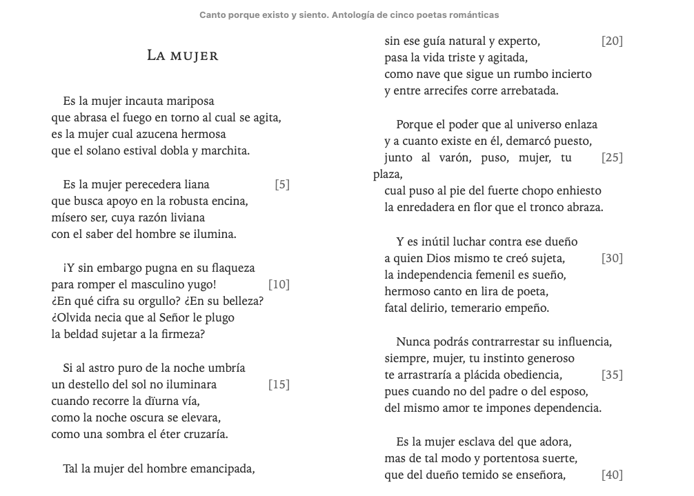 Los siguientes poemas son extraídos de: Canto porque existo y siento. Antología de cinco poetas románticas, editada por Marta Blanco Fernández.
