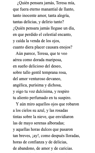 José de Espronceda (1808-1842). Prototipo del romántico liberal, fundó con quince años la sociedad secreta Los numantinos para luchar contra el absolutismo. Cultivó la novela, el drama, las Canciones y los poemas narrativos El estudiante de Salamanca y El diablo mundo. En este último, el canto II (Canto a Teresa), se lo dedica a Teresa Mancha, un apasionado romance que lo abandonó.