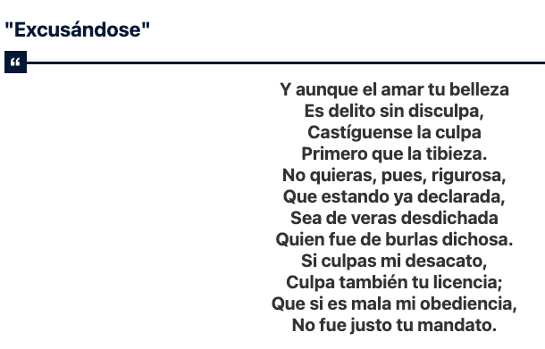 Juana, además de barroca, era satírica. Compruébalo con este famoso poema en redondillas, en la que censura la actitud de los hombres hacia las mujeres. Puedes optar por escucharlo adaptado por Juan Valderrama, en su disco Mujeres de carne y verso.