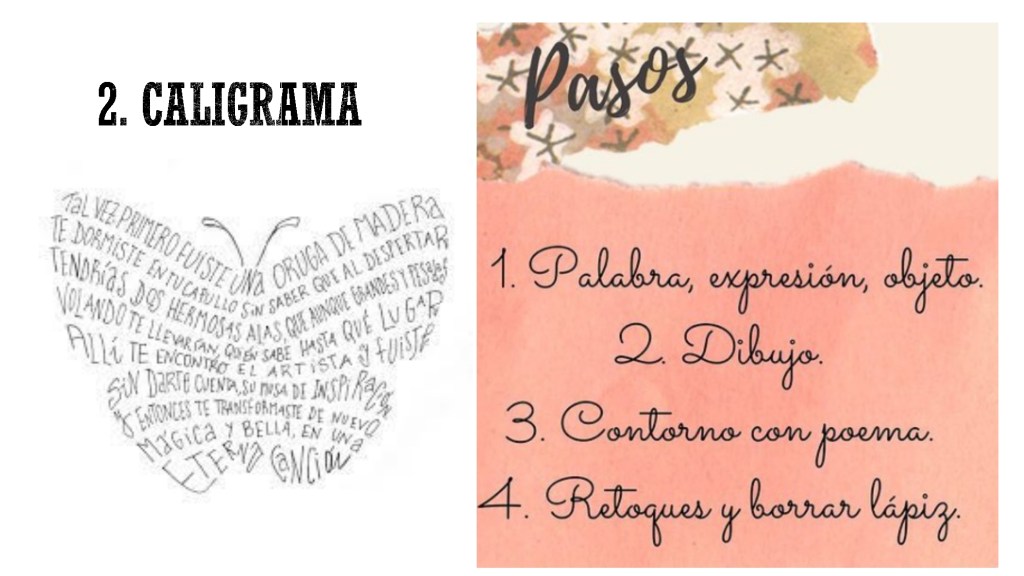 Primero, tendrás que elegir qué tipo de poema vas a crear (voy a dar cinco opciones) y a continuación, seguir los pasos para su creación. Al final de la clase los leeremos.