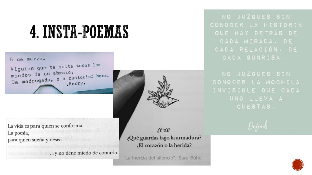 Son cientos de miles de seguidores los que siguen a estos escritores, porque la poesía no está hecha para una minoría. @miguelgane (383K seguidores), @redry (444K seguidores), @sarabuho (447K seguidores), @elvirasastre (609K seguidores), @defreds (948K seguidores)… ¿quieres ser uno de ellos?