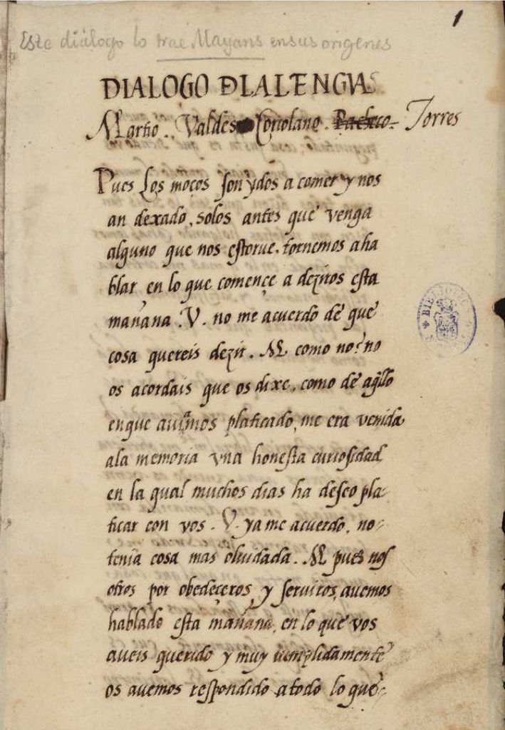 Si lo necesitas, consulta el Diálogo de la lengua en la biblioteca virtual Miguel de Cervantes.