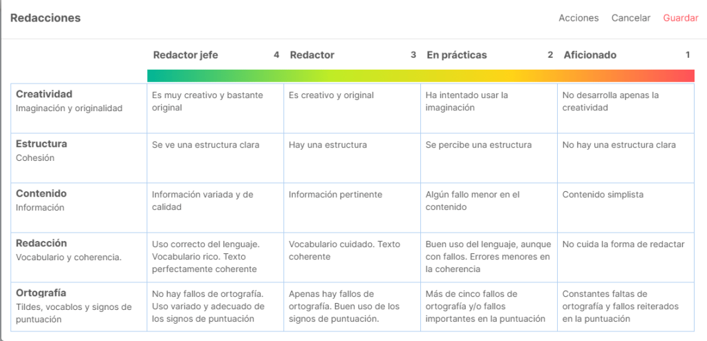 Esta será la rúbrica de corrección que utilizaréis para corregir los textos de los compañeros. Me lo entregaréis junto con la carta que os hayan entregado. No olvidéis contestar…