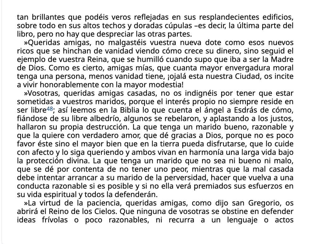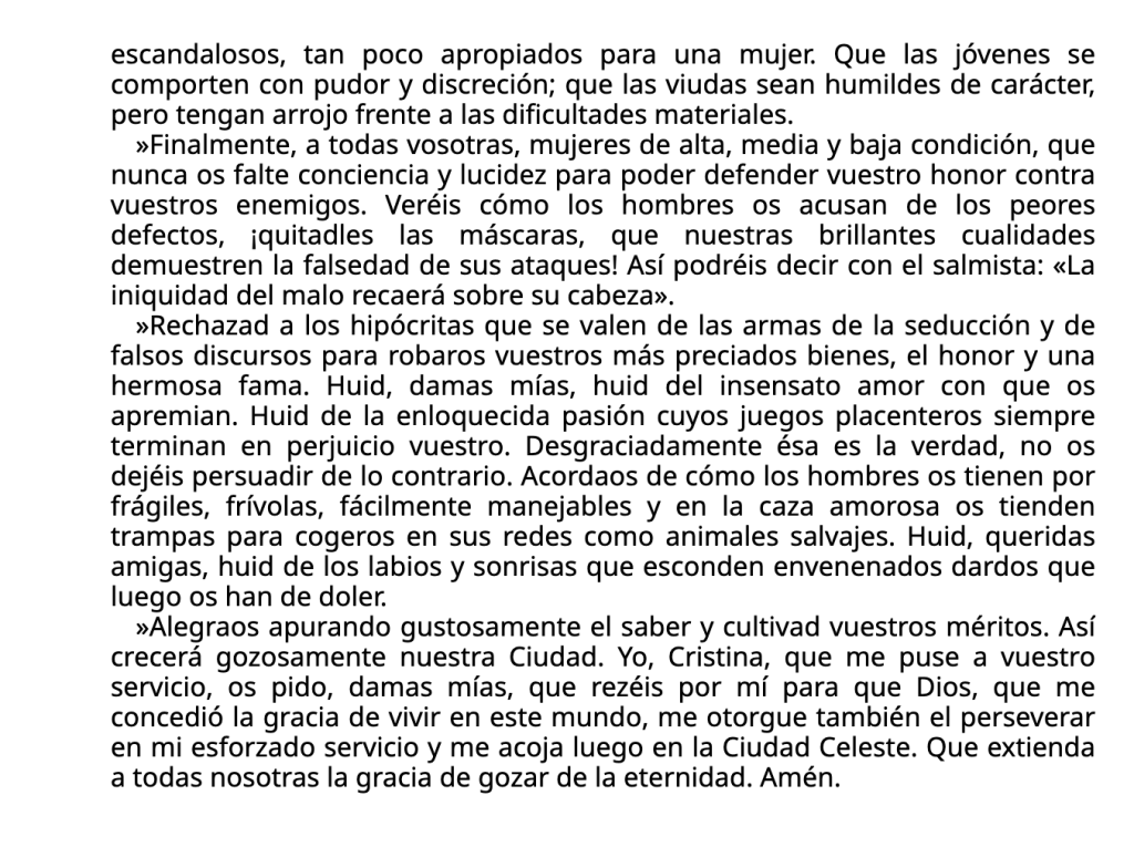 En el tercer círculo del Infierno contextualizamos esta obra que dio inicio a la Querella de las Mujeres, de Christine de Pizan, a la que conocimos en la cuarta cornisa del Purgatorio. En el cuarto, quinto y sexto cielo trabajaremos los tres libros que componen La ciudad de las damas de manera grupal.
