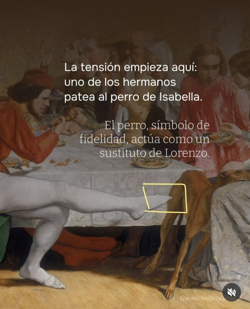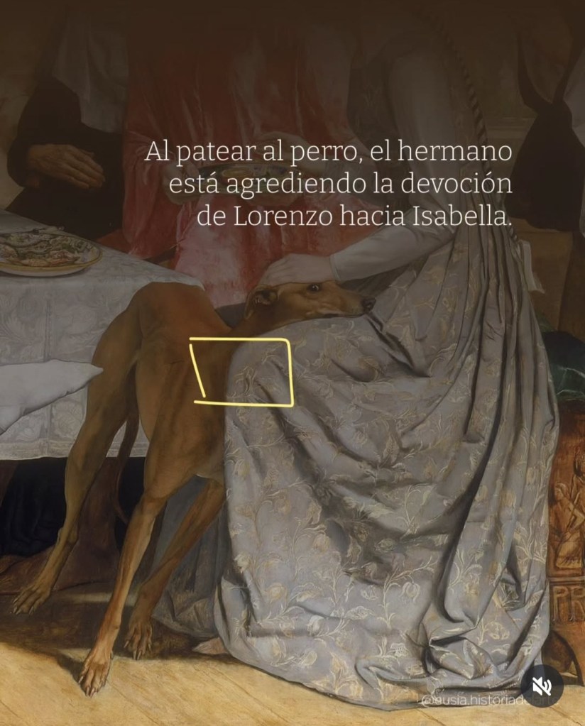 Fin del canto: Yo mis ojos giré cuando esto oyera, / y a mis poetas vi, que sonreían, / escuchando lo que ella me dijera; / y a la joven mis ojos se volvían.