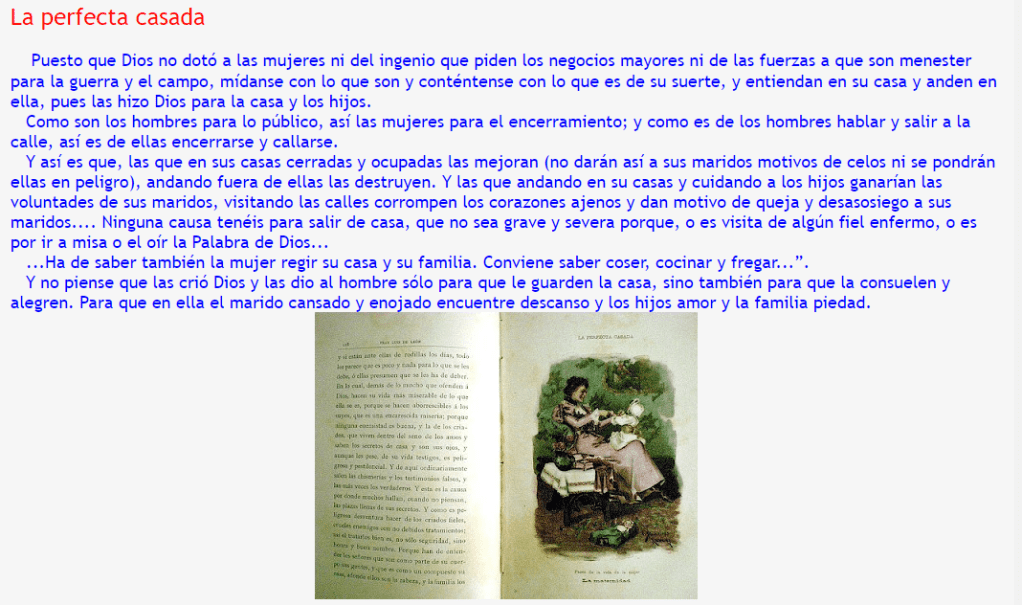 Una de sus obras más comentadas es la perfecta casada. Lee este fragmento para entender por qué (sitúate en la mentalidad de un monje del siglo XVI primero).