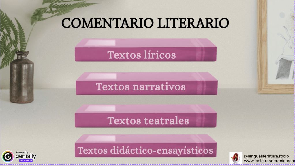 ¿Cómo se hace un comentario literario? Accede al genial.ly para ver los pasos que hay que seguir. Primero, elige el tipo de texto…