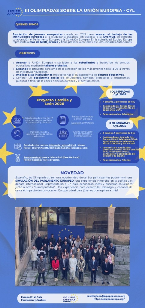 ¿Tienes entre 15 y 17 años y quieres participar en la fase regional de las Olimpiadas sobre la Unión Europea en Castilla y León? Serán el sábado 2 de marzo por la mañana en la Universidad de Salamanca.