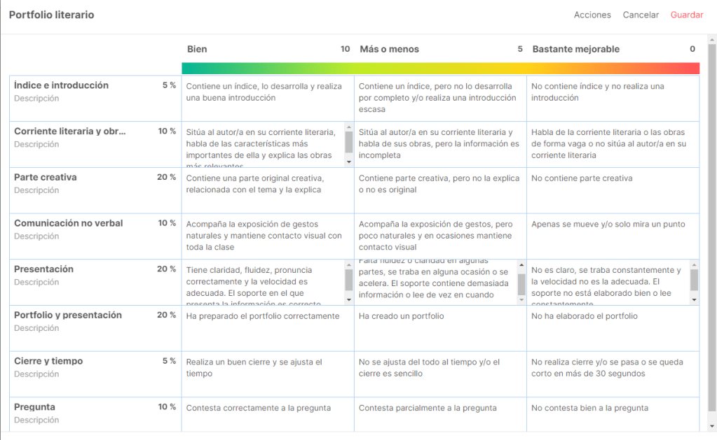 - Esta es la rúbrica de evaluación. Según esto, pondré la nota: