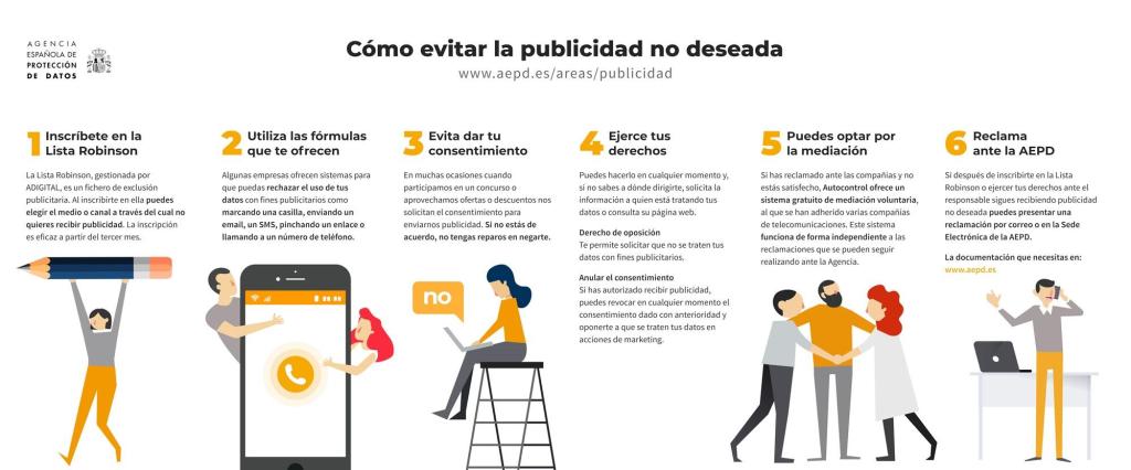 ¿Te han llamado alguna vez para venderte algo que no te interesaba y te gustaría que te dejaran de llamar? Inscríbete en la lista Robinson. También puedes tomar otras medidas: consúltalas en la siguiente infografía.
