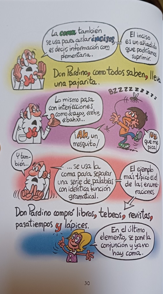 La coma es uno de los signos ortográficos que más cuesta utilizar. El profesor don Pardino nos lo explicará con sus singulares viñetas, extraídas de su manual: La letra con humor entra.
