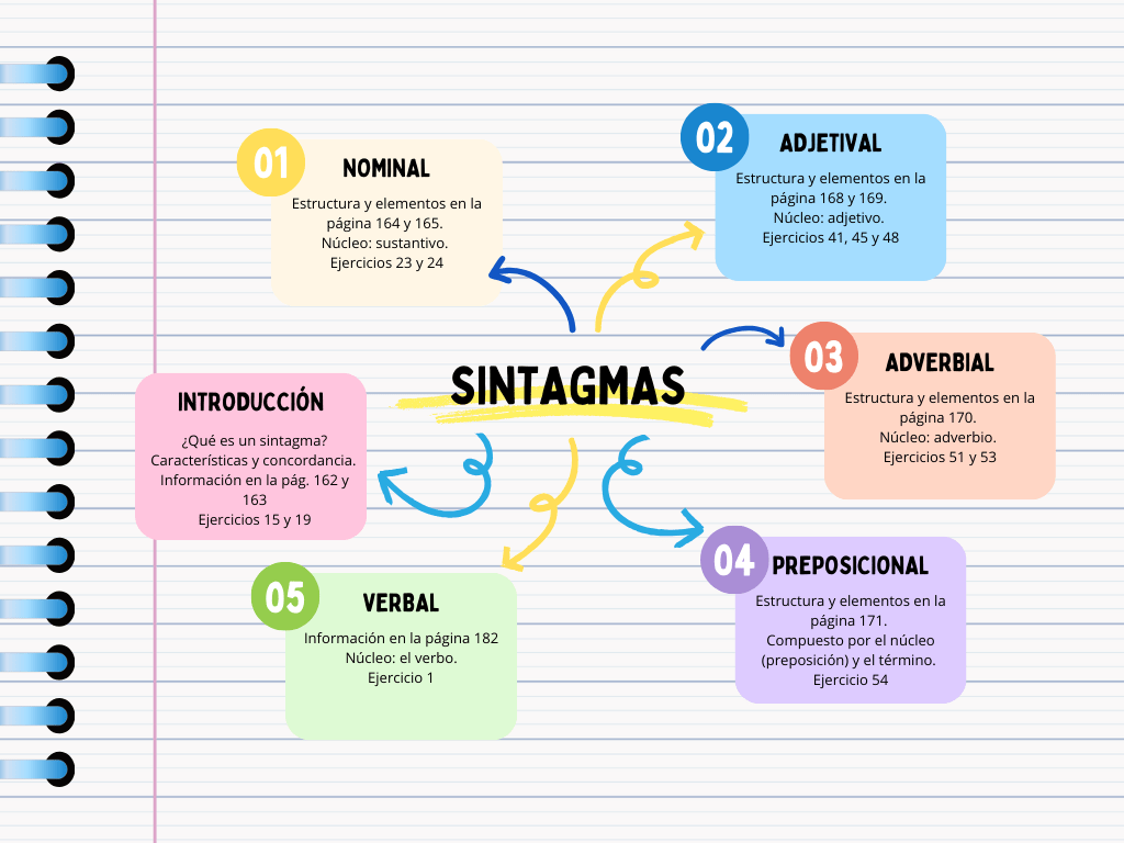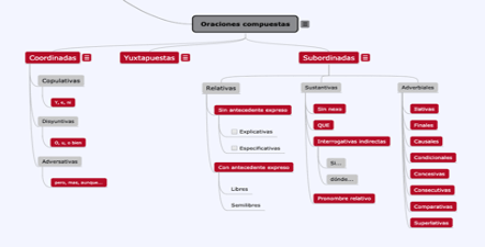 Breve repaso de la sintaxis: grupos, oraciones simples y oraciones compuestas en Mindomo.